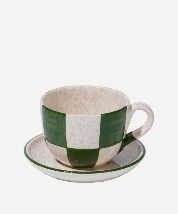Serve up your favourite hot beverage in Vaisselle's elegant Hot Stuff teacup and saucer set - poised to beautify your table setting with a dose of bold pattern in a refined two tone palette.