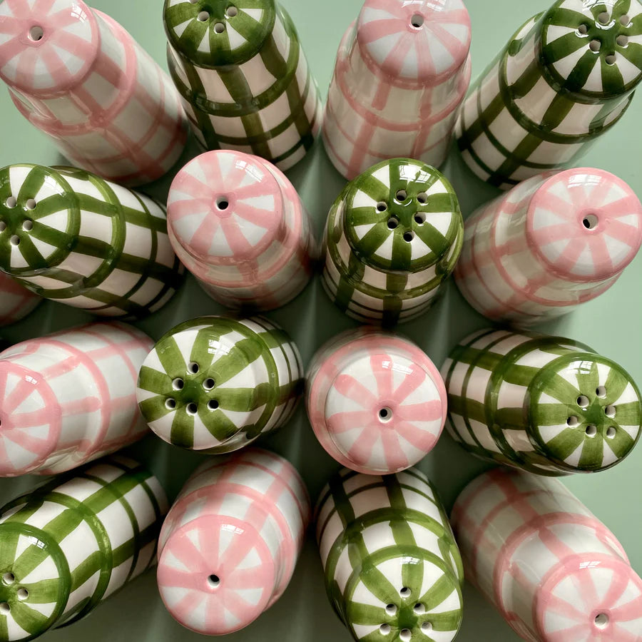 Masterfully combining old-world techniques with sustainable practices, Vaisselle tableware is handcrafted and hand-painted by artisans in southern Spain. Named after the iconic rap duo, the Salt N’ Pepa Salt & Pepper shaker set will bring a playful touch to every meal. The pink and forest green gingham pattern will contrast with most tablescapes, so no one will ever lose sight of the seasoning.